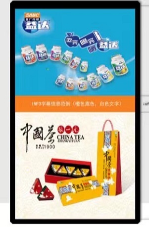 32寸下屏:以靜態(tài)圖片宣傳的方 式對產(chǎn)品進行包裝宣傳;適用于 信息類、活動類消息的宣傳。