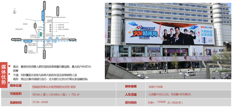 • 商業(yè):最受時(shí)尚消費(fèi)人群歡迎的西單商圈內(nèi)最顯眼、******的戶外LED大屏幕
