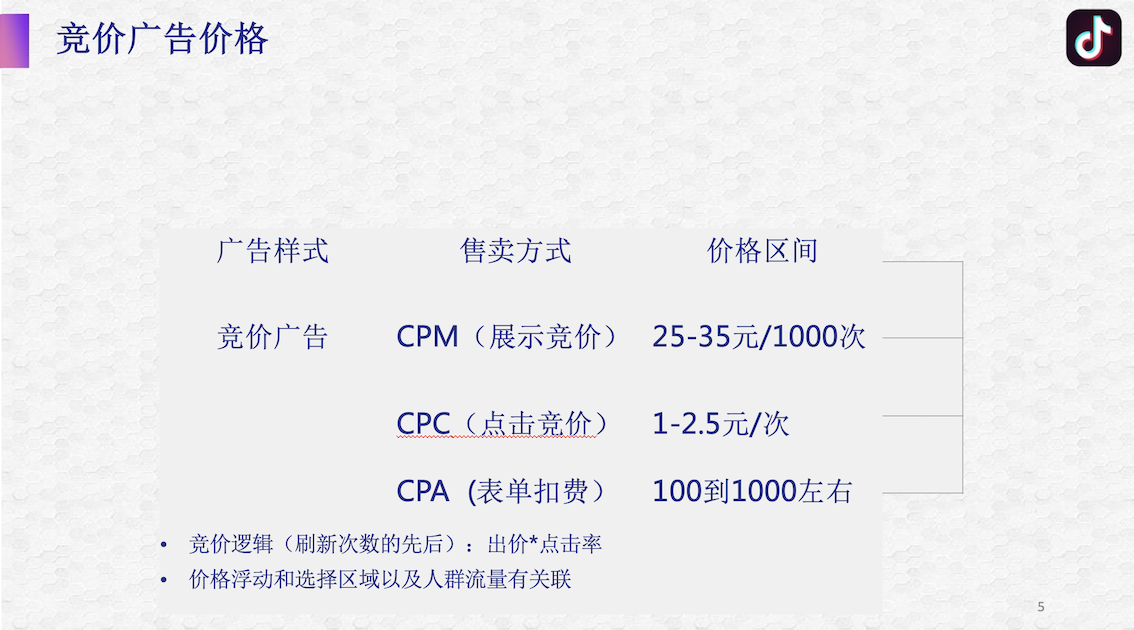 抖音的收費(fèi)方式:1、按照曝光呈現(xiàn)次數(shù)CPM(千次曝光);2、按照點(diǎn)擊CPC(點(diǎn)擊次數(shù));3、按照CPT(曝光市場);4按照CPA(注冊、下載量);5、按照CPS(實(shí)際銷量,抽成)