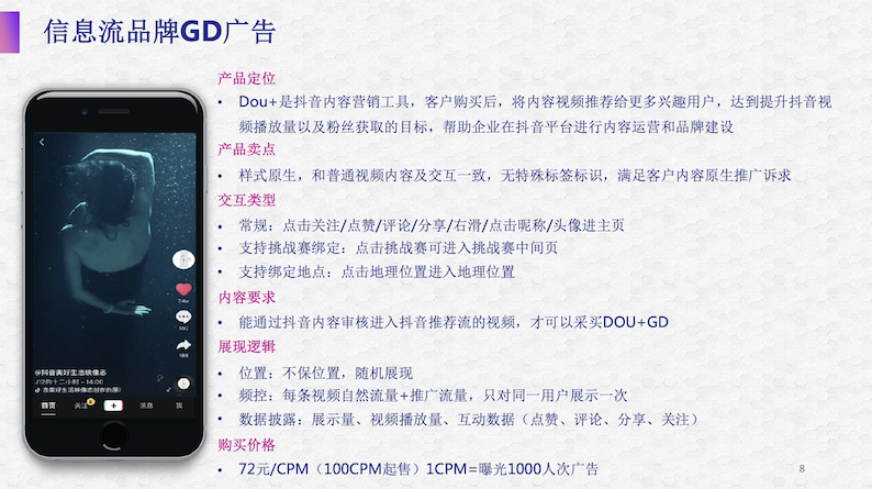 抖音廣告形式有:信息流廣告、KOLKOC筆記植入
